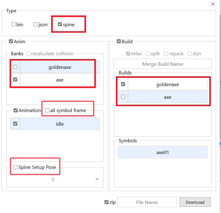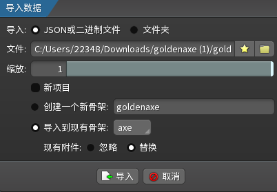 goldenaxe.zipandaxe.zipinto the websiteThe animation data selected in the export options must include the animation data of the previous project, and the optional options are the same as the previous project.